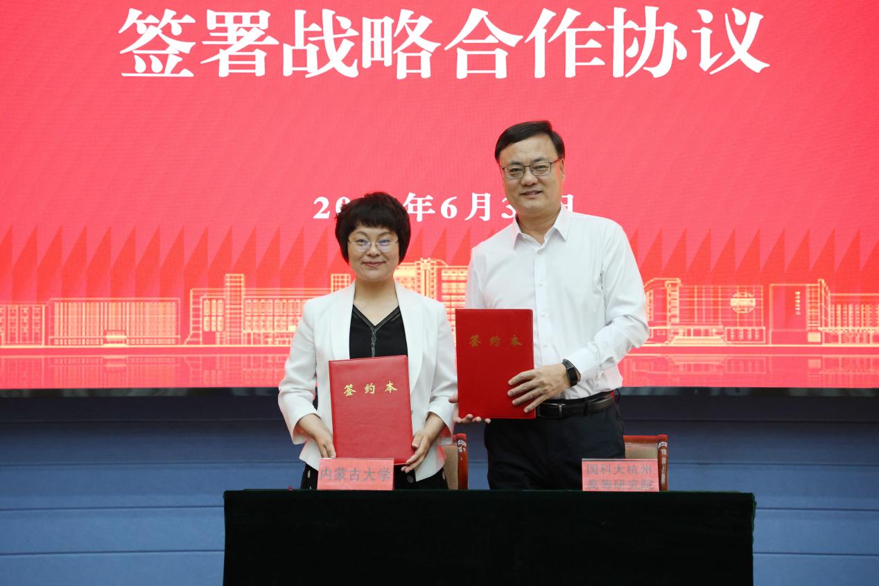 郑崇辉说,内蒙古大学是新中国成立后党和国家在边疆民族地区创办的第一所综合性大学,具有悠久的治学传统和崇高大学精神。国科大杭州高等研究院是集科教创产为一体的新型研发机构,以培养新型科技人才、攀登科学高峰、助力产业发展为使命,期待双方在科研攻关、人才共育等方面结出硕果,共同为建设教育科技人才强国贡献更大力量!